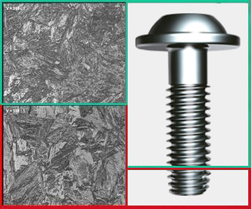With the HardTip process, the forming zone of the thread point of a screw is additionally inductive-hardened after previous hardening and tempering or case hardening. Thus, materials which have too high a strength for conventionally hardened screws can also be fastened in a self-tapping way. EJOT® HardTip screws are used if case-hardened fastening elements are not permitted or conventionally hardened screws would fail because the screw-in material is too strong.
