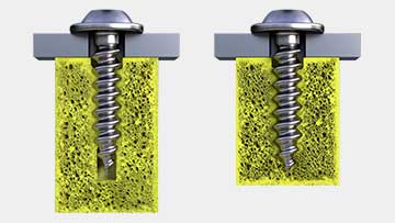 The special thread contour was developed for cellular foamed thermoplastics and the functionality was confirmed in a comprehensive test series. In the case of blind hole screw joints, the specially formed point penetrates into the plastic material at the bottom of the blind hole and a further increase of the torques is achieved.