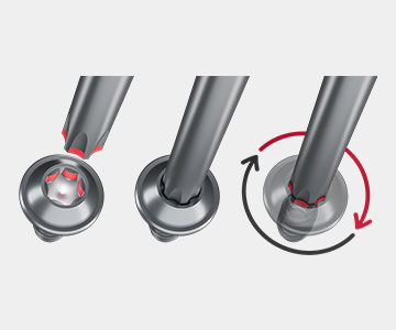 - The axial alignment of the screw in all assembly situations ensures easy application of the screw